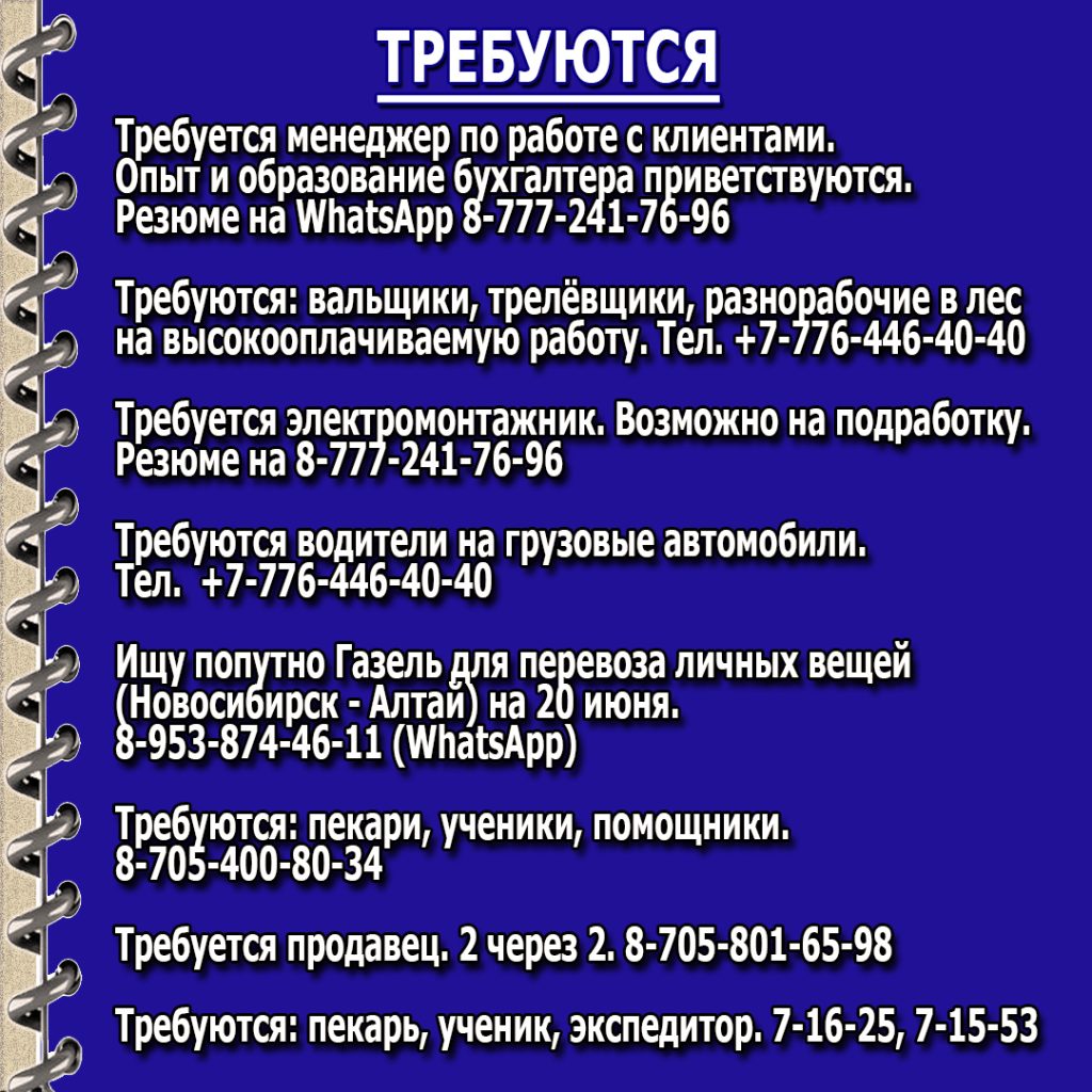 10.06.202510.06.2025 - Куплю/Продам, Обменяю, Объявления, Предлагаем, Сниму/ Сдам, Требуется/ Ищу работу, УслугиОбъявления от 10.06.25