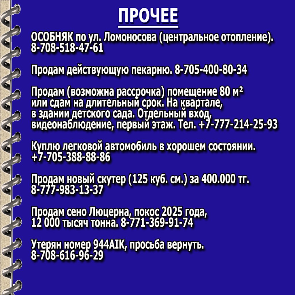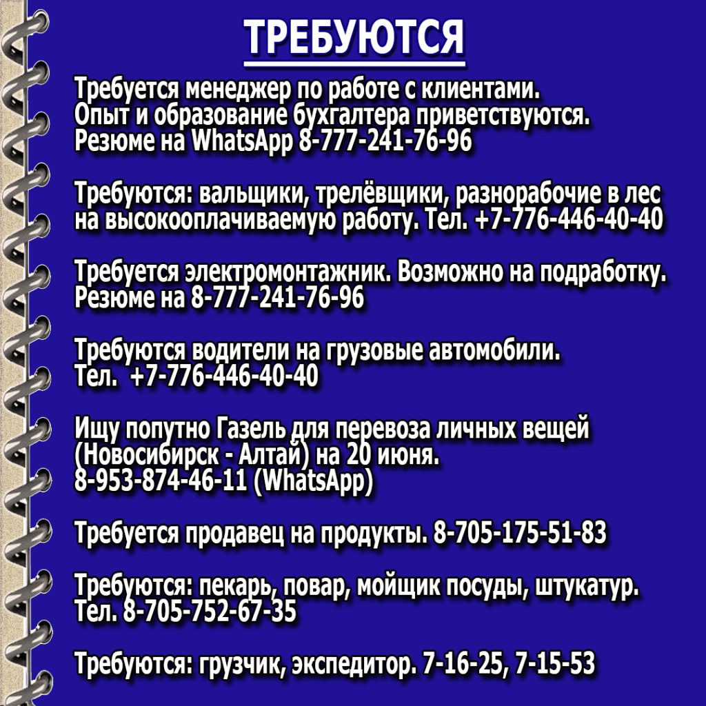 16.06.202516.06.2025 - Куплю/Продам, Найдено/Утеряно, Объявления, Предлагаем, Сниму/ Сдам, Требуется/ Ищу работу, УслугиОбъявления от 16.06.25
